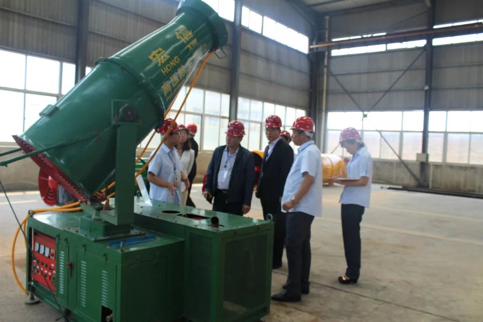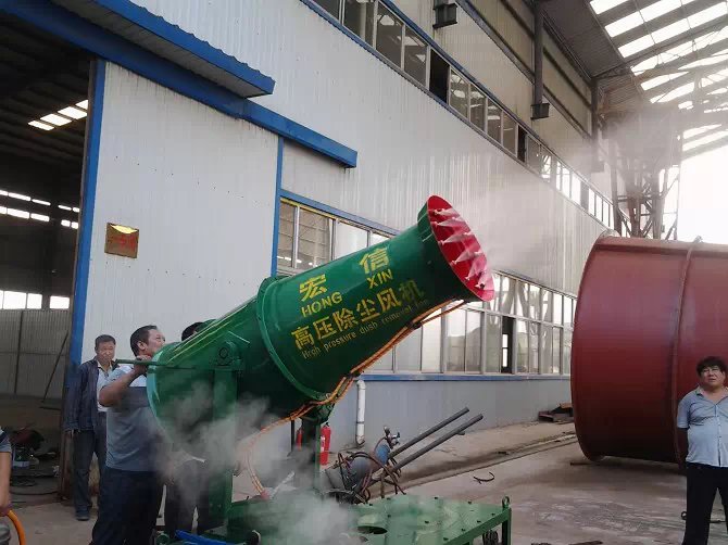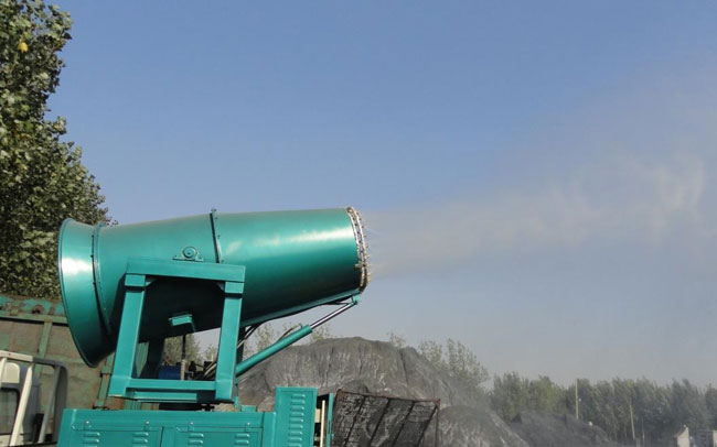 功力強(qiáng)、射程遠(yuǎn)、覆蓋范圍廣、可實(shí)現(xiàn)精量噴霧;工作效率高、噴霧速度快;對容易引起塵埃的堆場噴水除塵時(shí),噴出的霧粒細(xì)小、與飄起的塵埃接觸時(shí),形成一種潮濕霧狀體,能快速將塵埃抑制降沉。